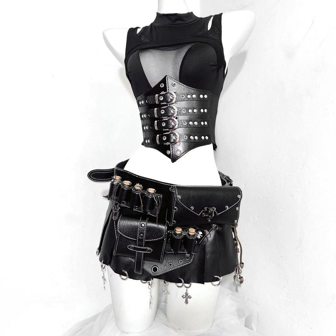 Crewneck hollow out corset PU leather cut out top | Festival Outfits Women