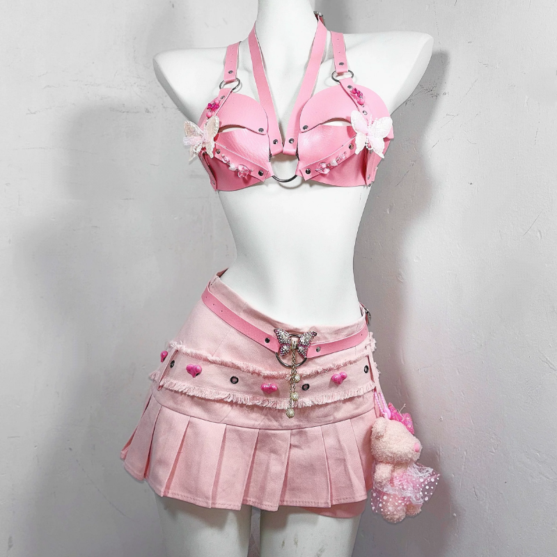 O ring PU leather butterfly applique buckle top | Festival Outfits Women