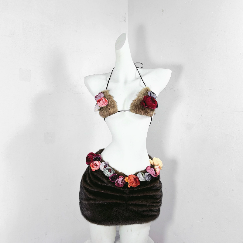 Halter skull applique rivet fluffy top | Festival Outfits Women