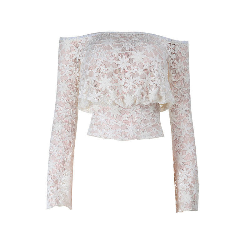 Long sleeve lace off shoulder solid top | Festival Outfits Women