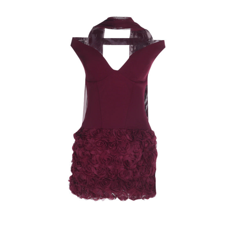 Halter self tie solid backless mini dress | Festival Outfits Women