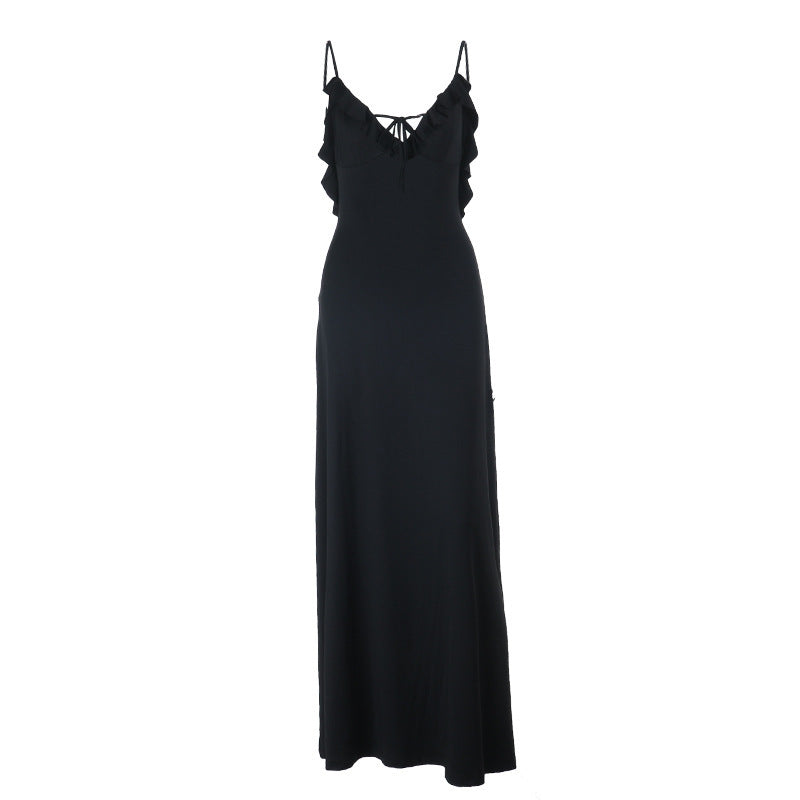 Self tie ruffle v neck backless cami maxi dress | Festival Outfits Women