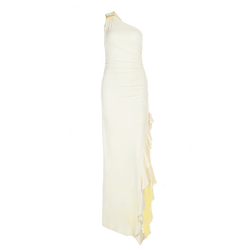 Irregular one shoulder slit ruffle ruched maxi dress | Festival Outfits Women