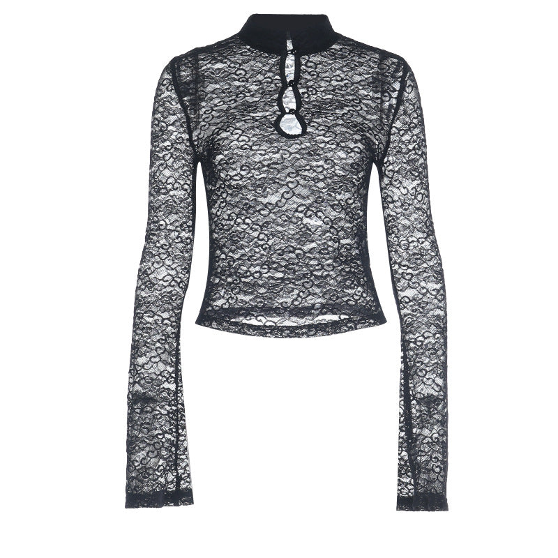 Long sleeve hollow out lace see through cut out top | Festival Outfits Women