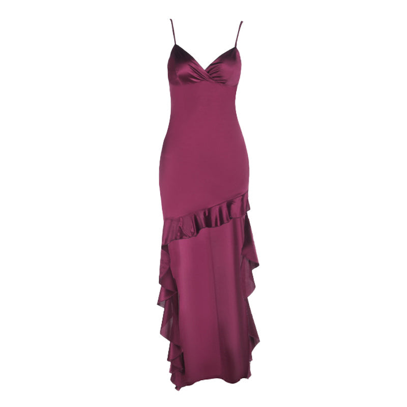 Irregular ruffle v neck satin cami midi dress | Festival Outfits Women