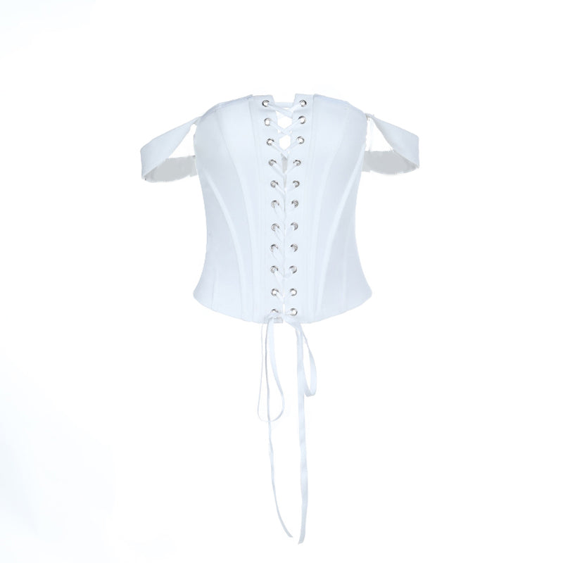 Off shoulder self tie button corset tube top | Festival Outfits Women