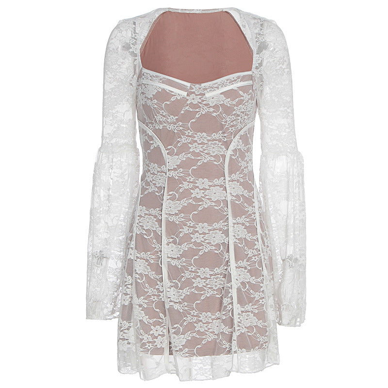 Long sleeve v neck lace patchwork mini dress | Festival Outfits Women