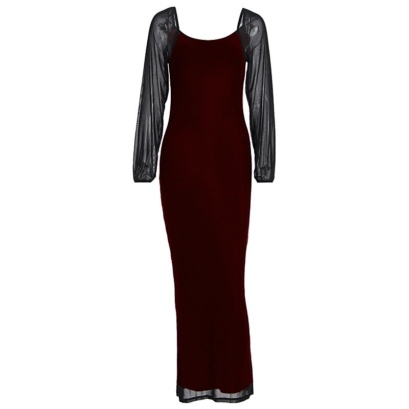Long sleeve u neck mesh patchwork maxi dress | Festival Outfits Women
