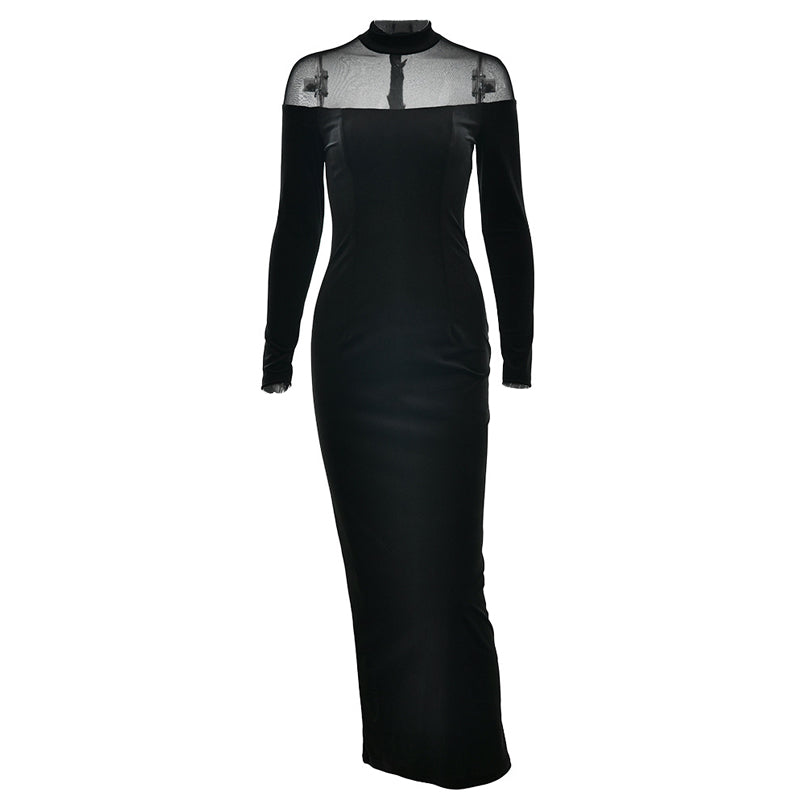 Hollow out o ring long sleeve mesh cut out maxi dress | Festival Outfits Women