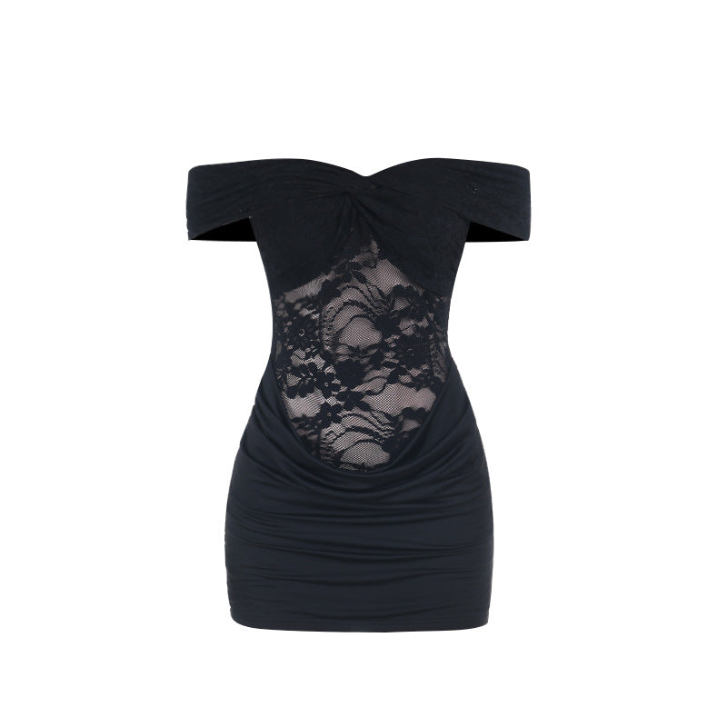 Off shoulder lace ruched solid mini dress | Festival Outfits Women
