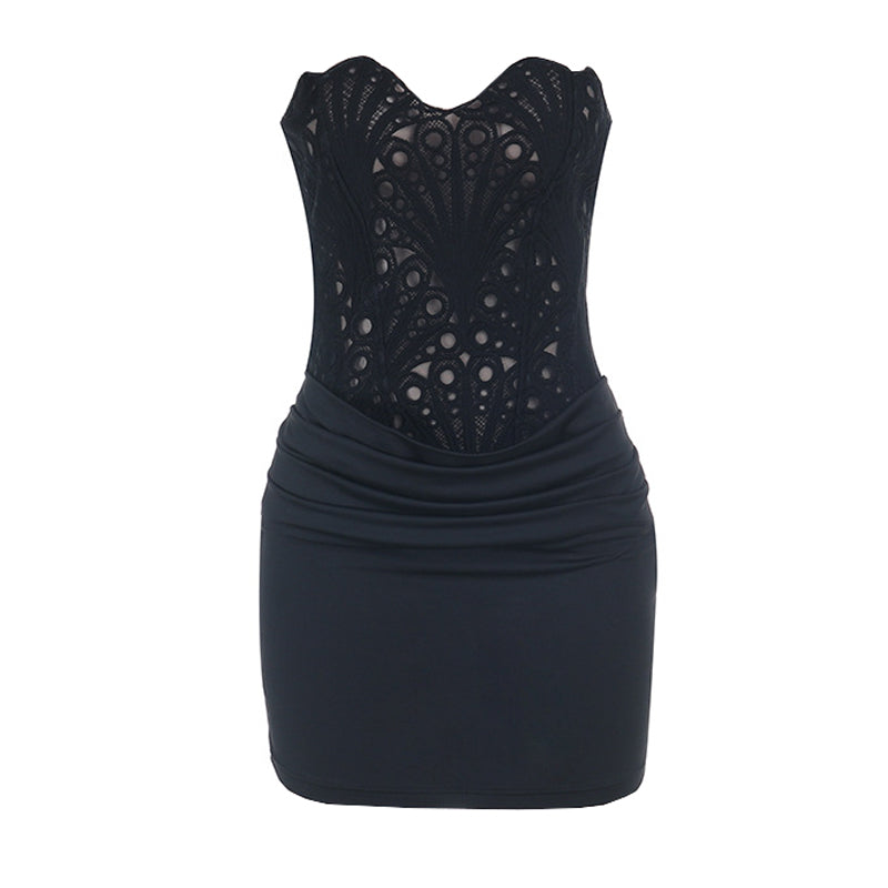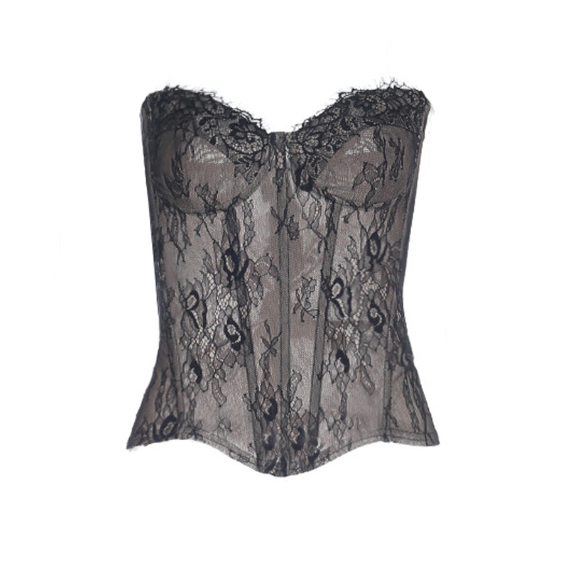Sweetheart neck lace backless zip-up tube top | Festival Outfits Women