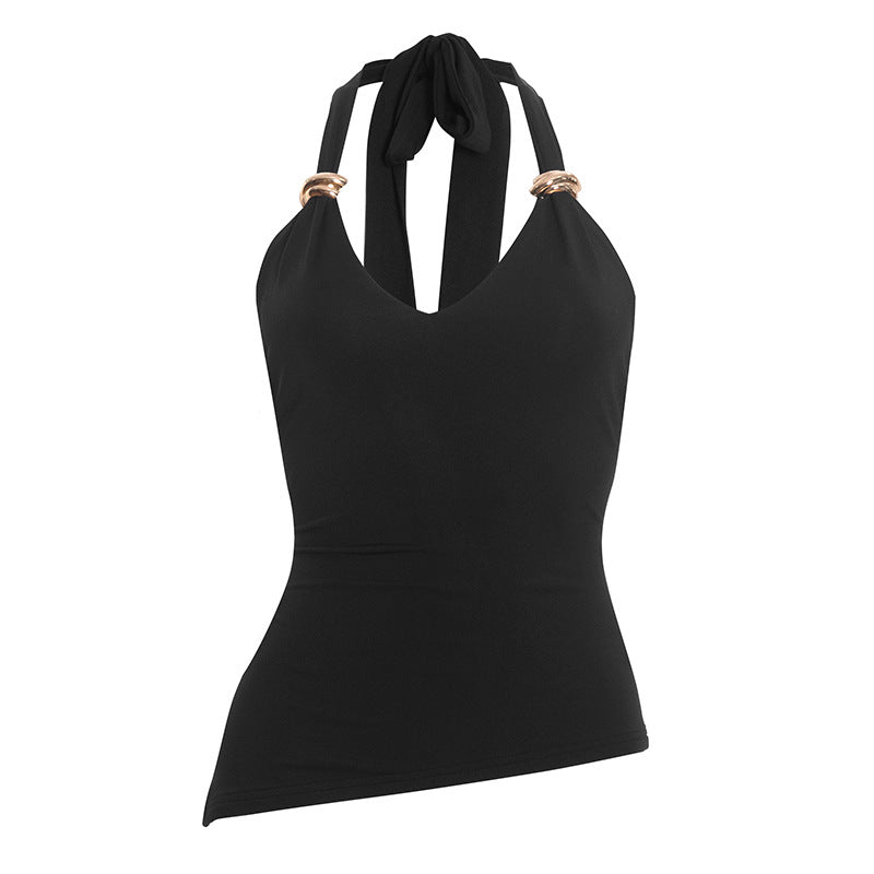 Irregular v neck self tie halter backless top | Festival Outfits Women