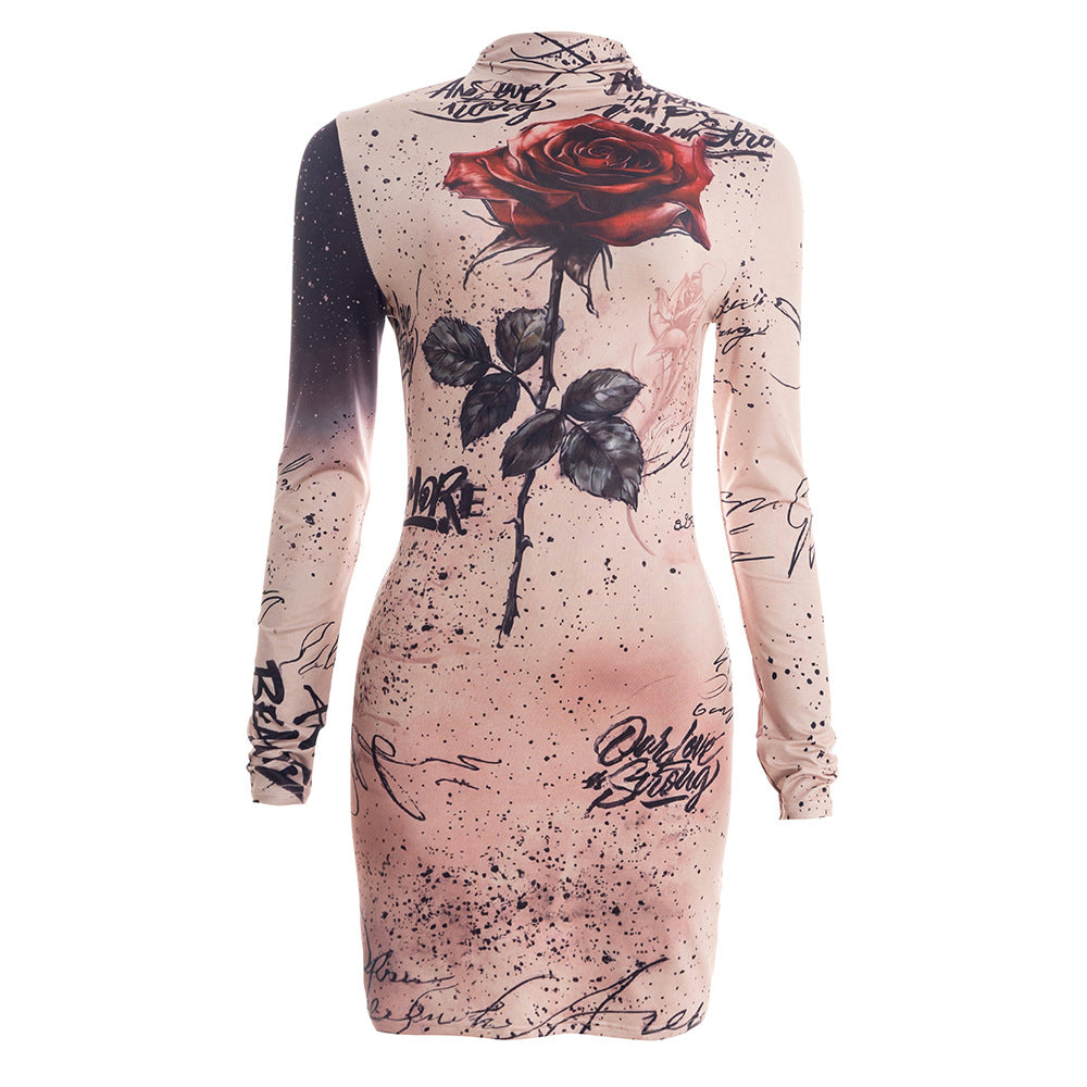 Long sleeve flower applique high neck mini dress | Festival Outfits Women