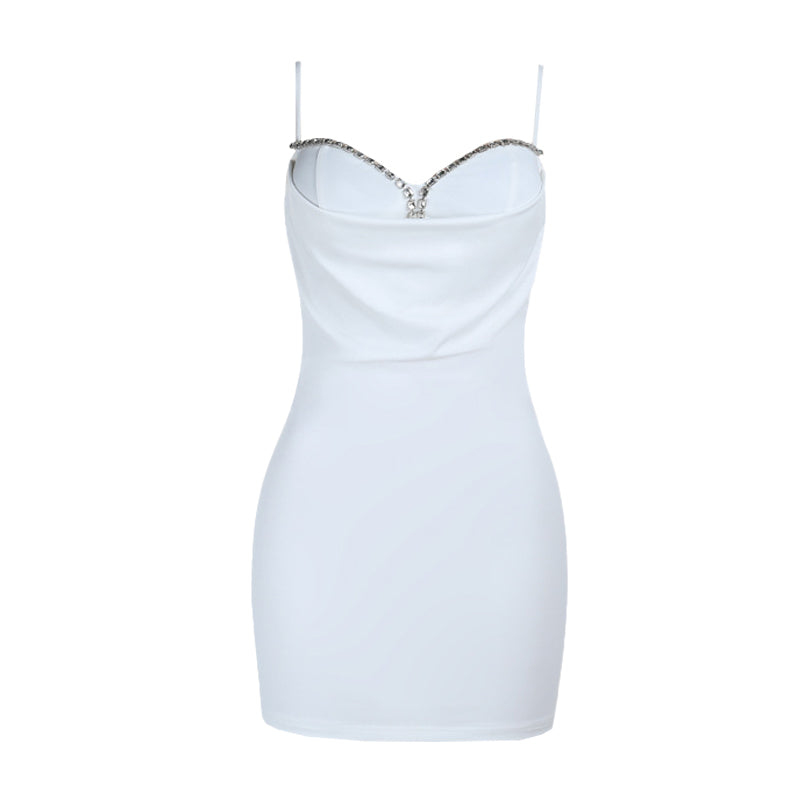 V neck beaded solid backless cami mini dress | Festival Outfits Women