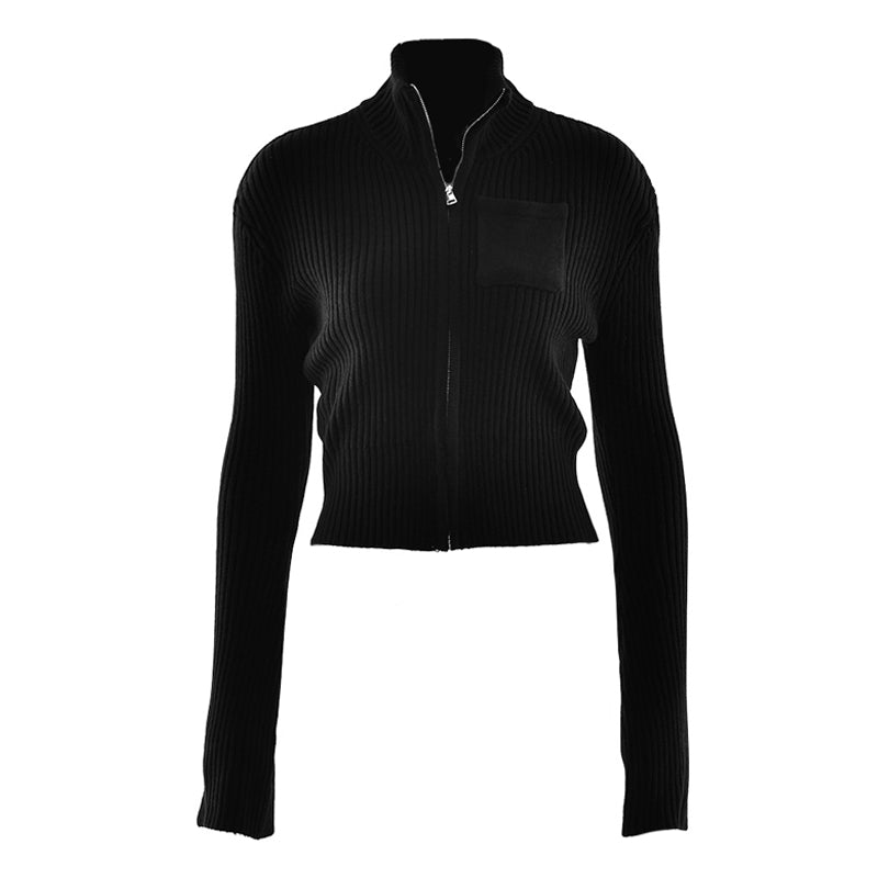Long sleeve zip-up high neck solid top | Festival Outfits Women