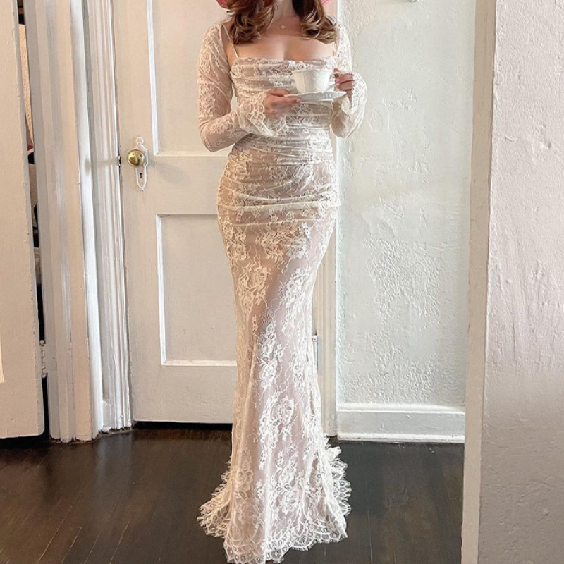 Long sleeve lace square neck cami maxi dress | Festival Outfits Women