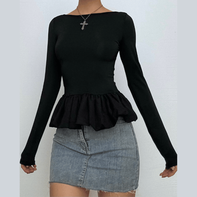 Irregular long sleeve hollow out ruched one shoulder cut out top-final-sale