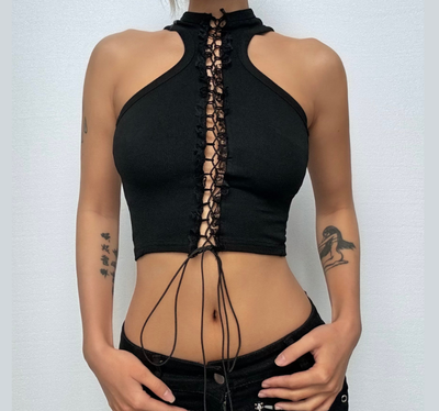 Lace up contrast ruffle corset notch neck tube crop top-final-sale