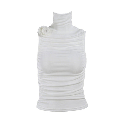 Ruched high slit flower applique irregular solid maxi skirt-final-sale