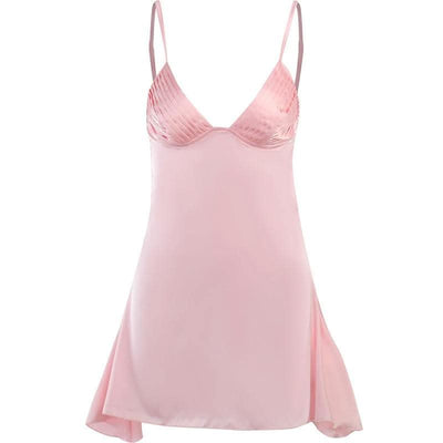 Lace hem satin ruched hollow out backless cami cut out mini dress-final-sale