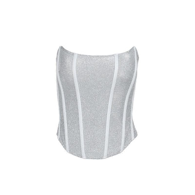 Contrast patchwork gloves fluffy ruffle backless tube mini dress-final-sale
