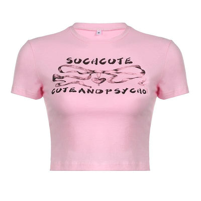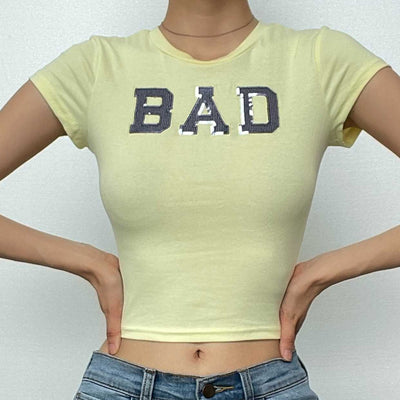 “SPOILED” embroidery contrast crewneck cap sleeve crop top