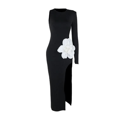 Cross front solid long sleeve off shoulder slit self tie maxi dress-final-sale