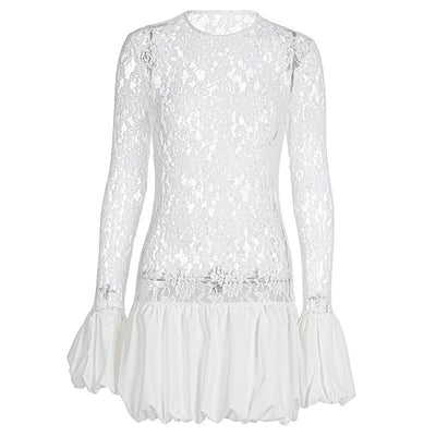 Long sleeve lace patchwork crewneck mini dress