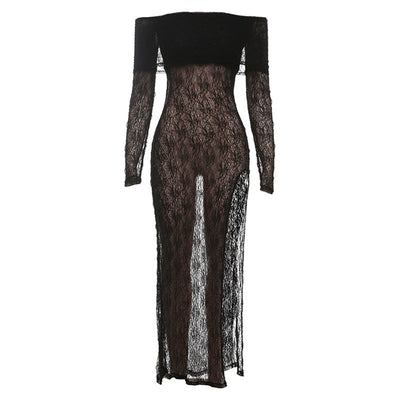 Long sleeve gloves mesh patchwork stitch contrast mini dress