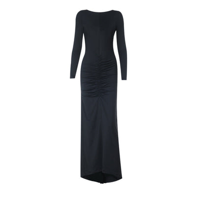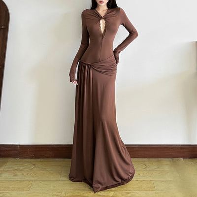 Hollow out high slit ruched long sleeve cut out maxi dress