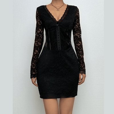 Long sleeve off shoulder lace hem hollow out cut out mini dress