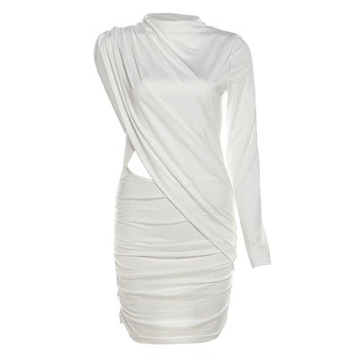 Long sleeve off shoulder glitter mesh ruched mini dress