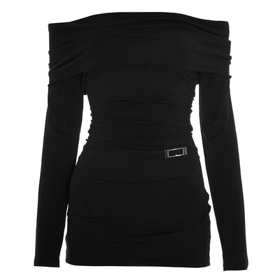 Off shoulder long sleeve solid ruched mini dress