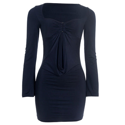 Hollow out long sleeve ruched solid cut out mini dress