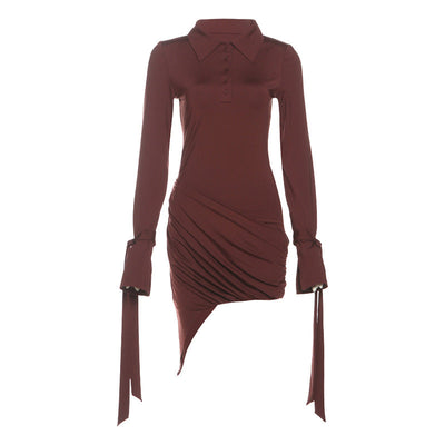 Long sleeve turnover collar solid mini dress