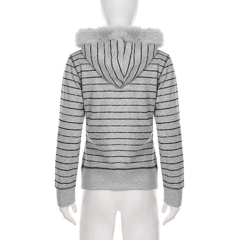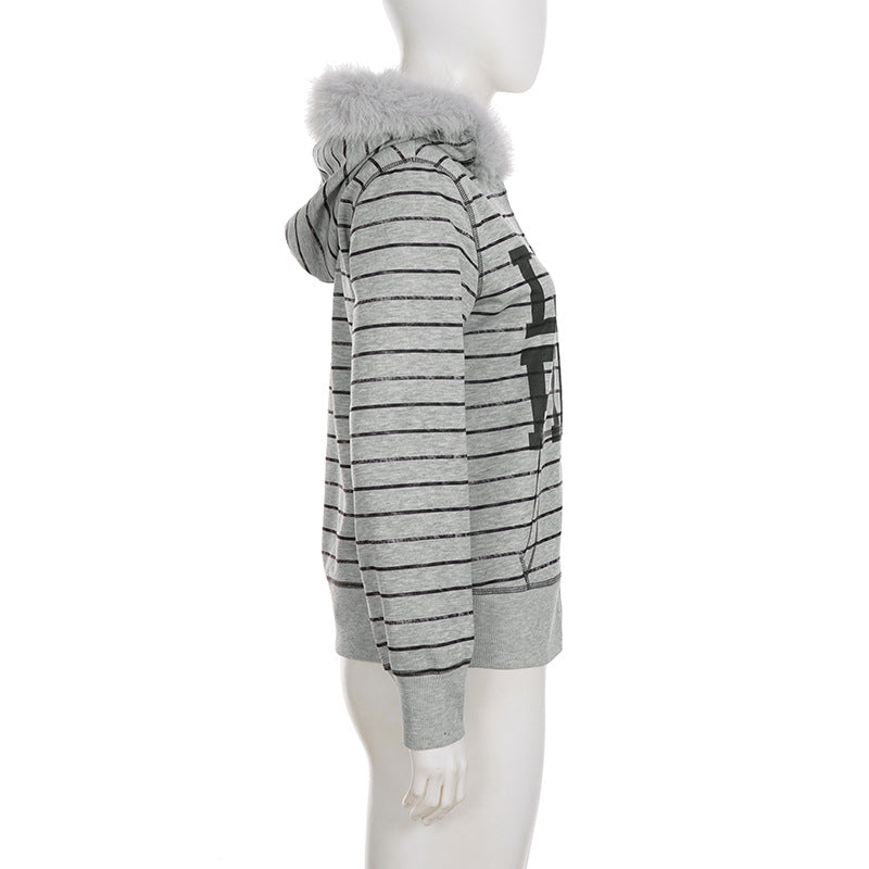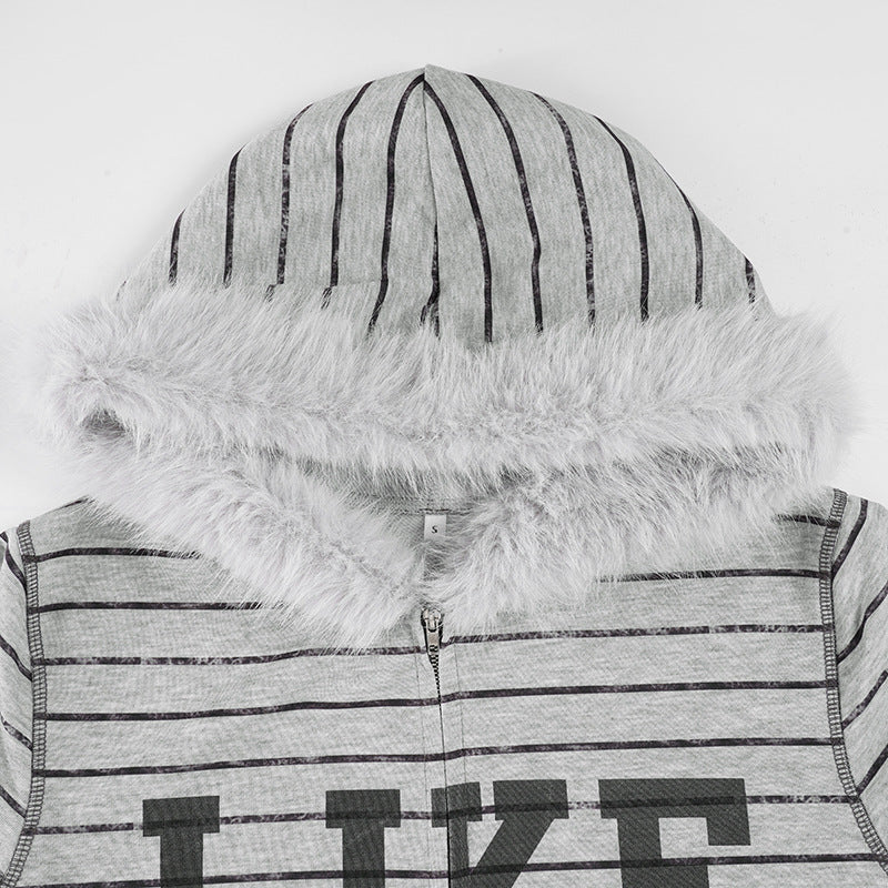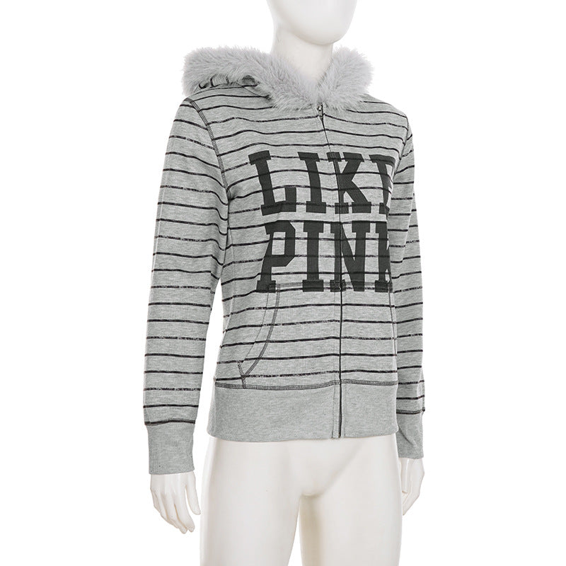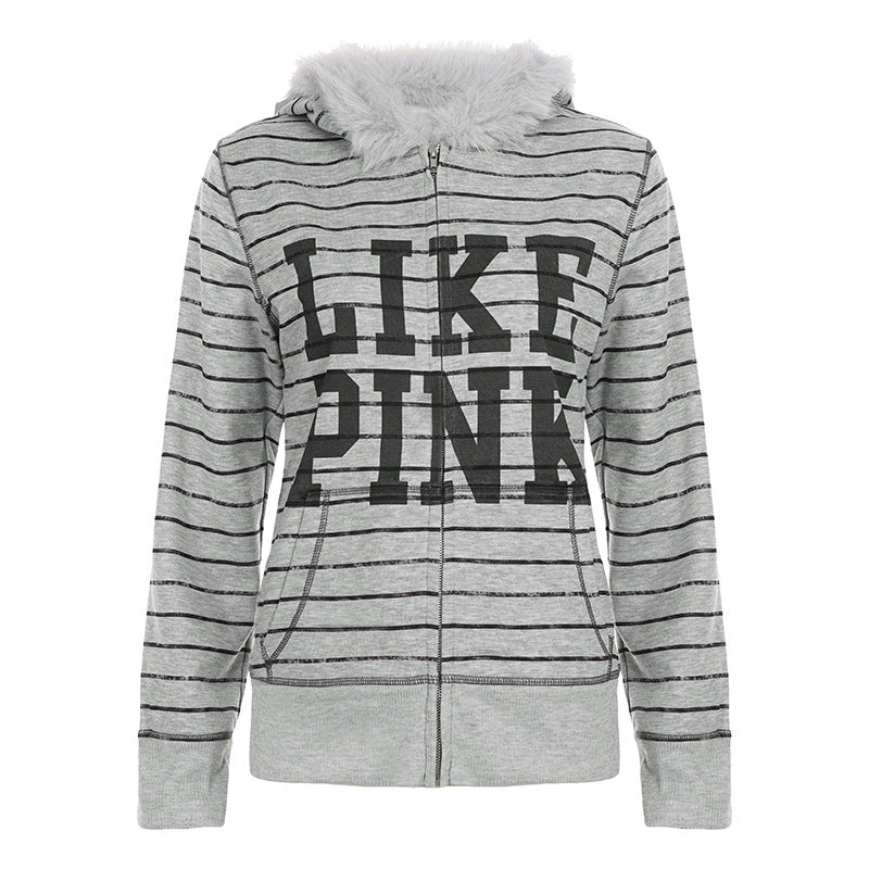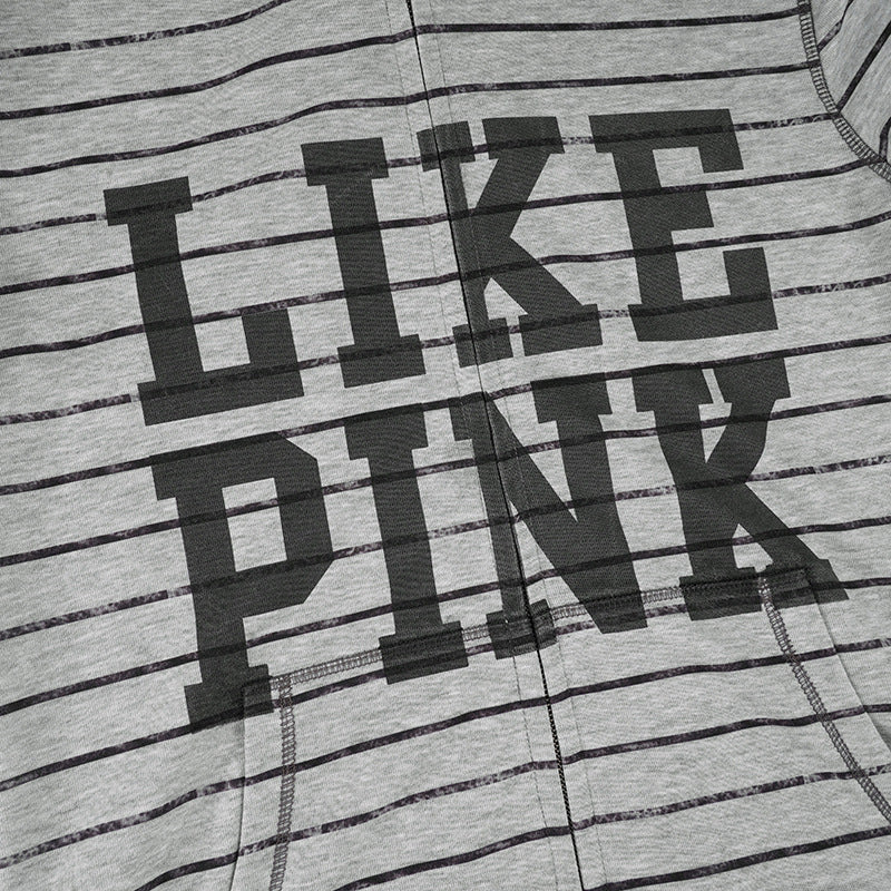 Hoodie fluffy long sleeve zip-up "LIKE PINK" pattern top