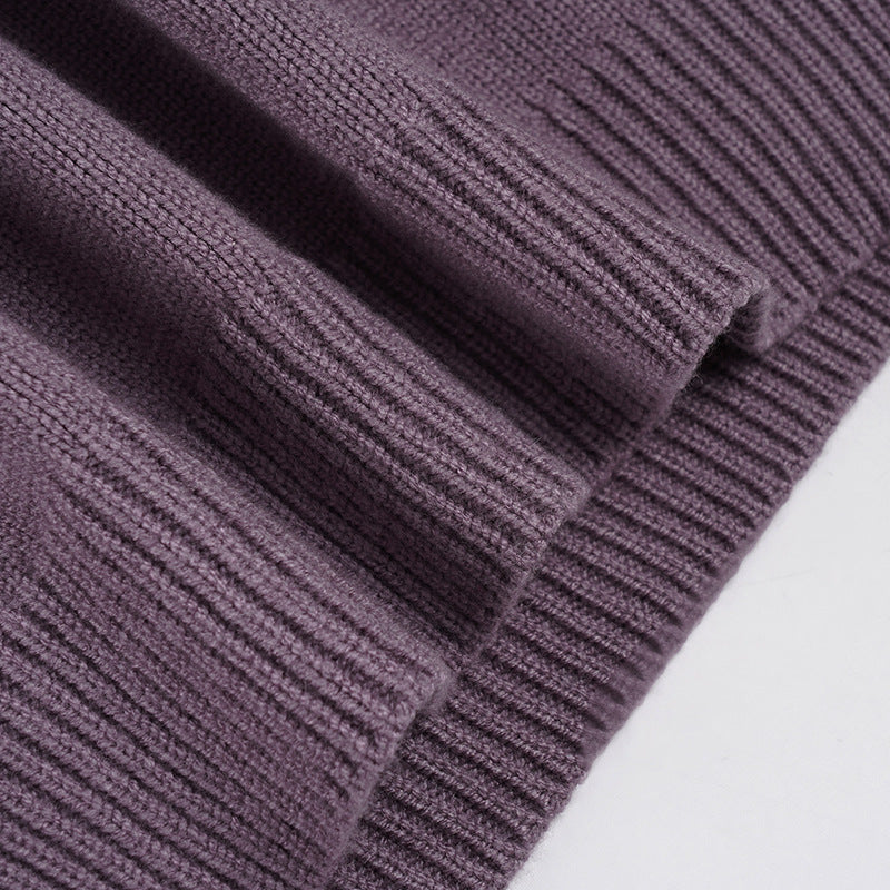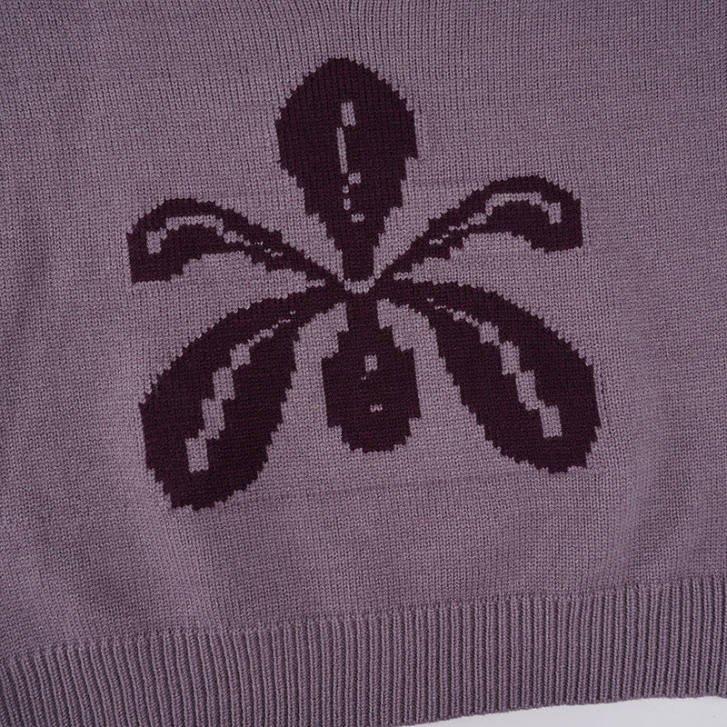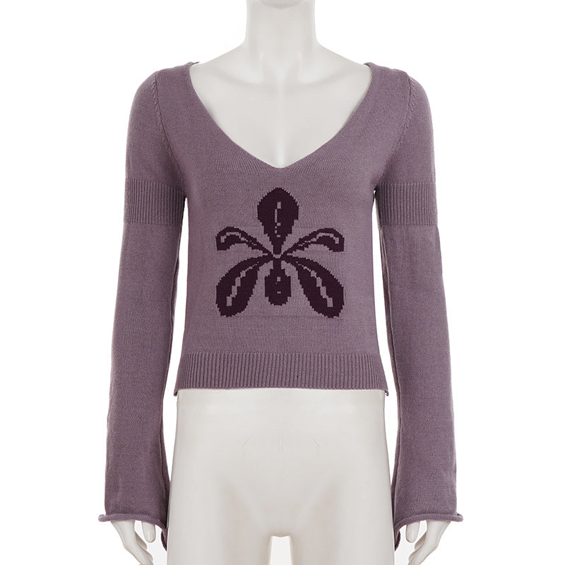 Knitted long sleeve v neck flower pattern top