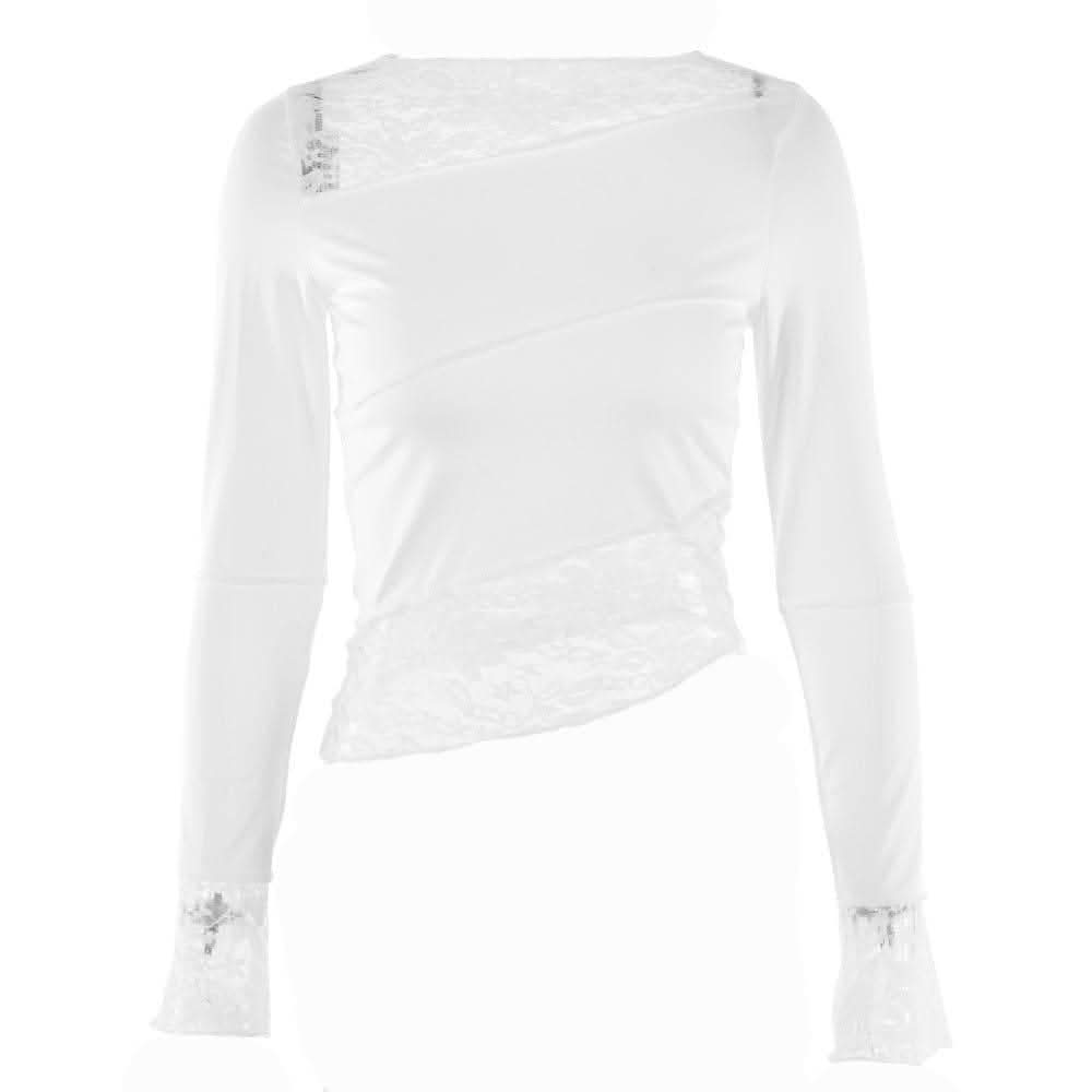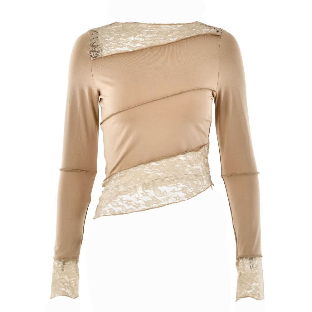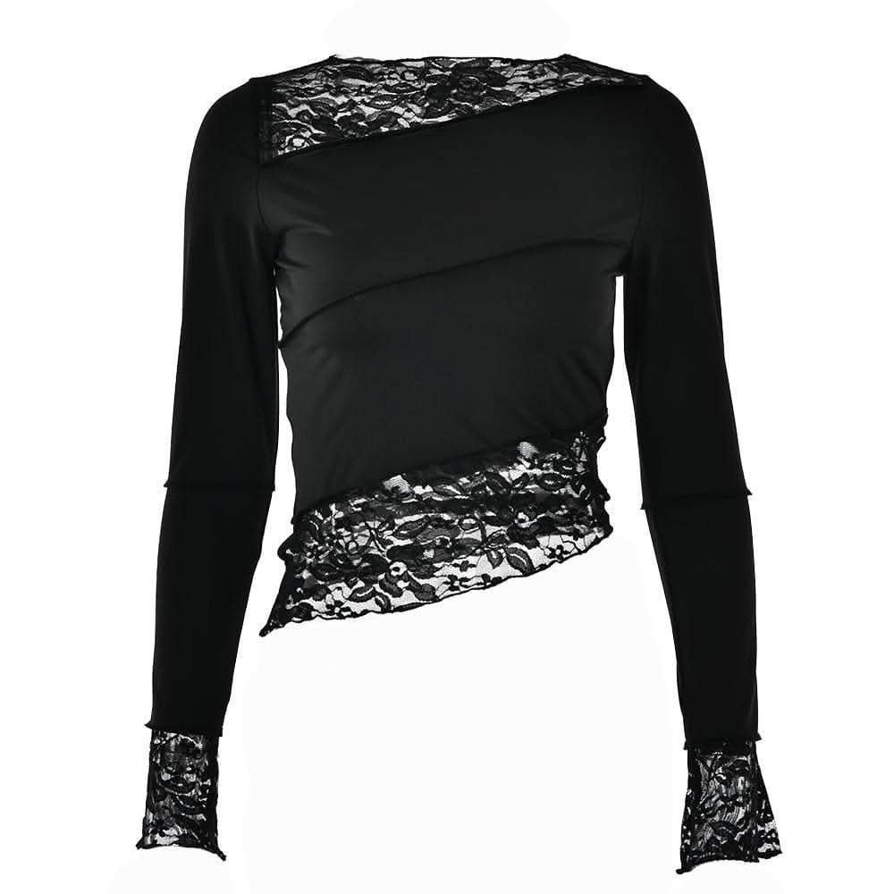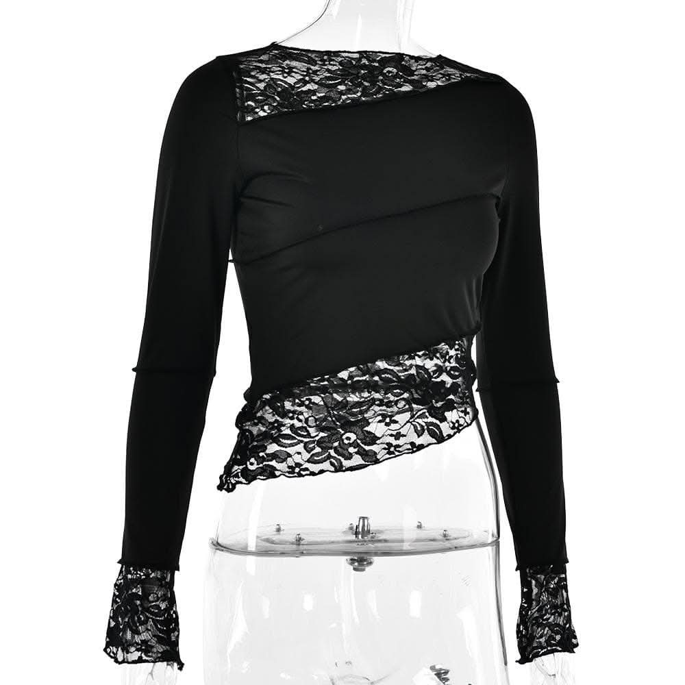 Lace patchwork irregular stitch long sleeve top-final-sale