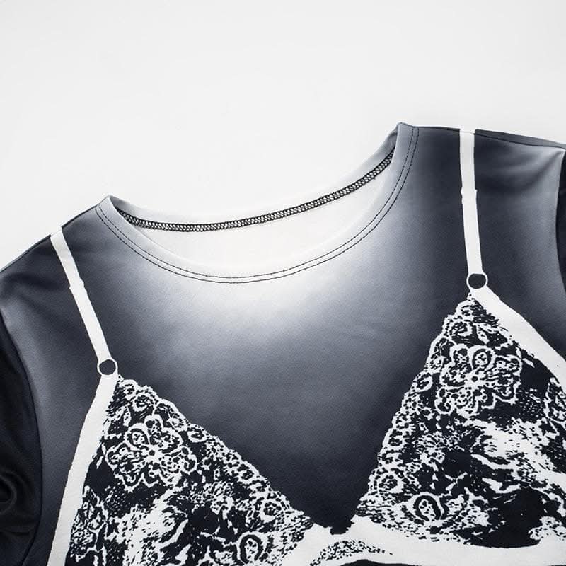 Long sleeve body print gradient crewneck contrast top-final-sale