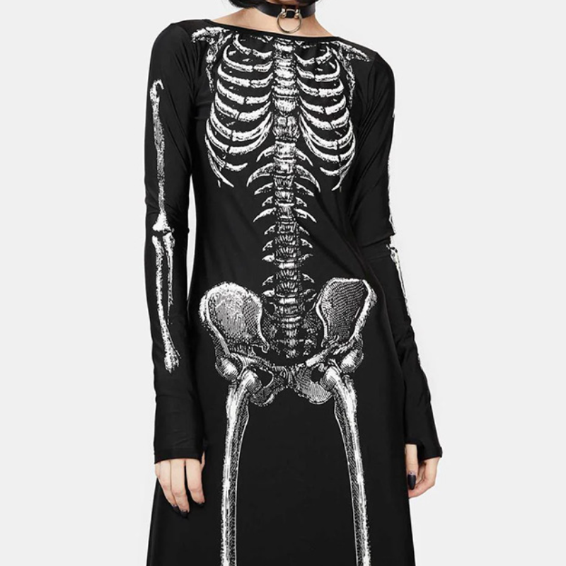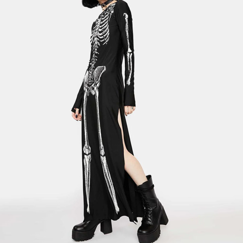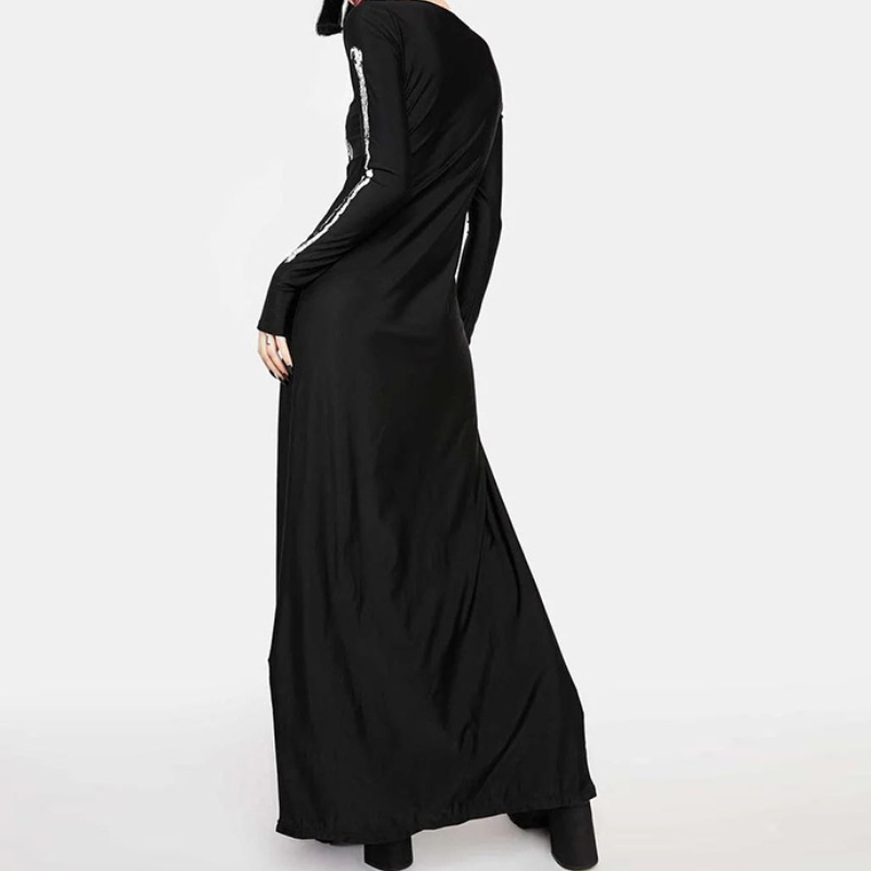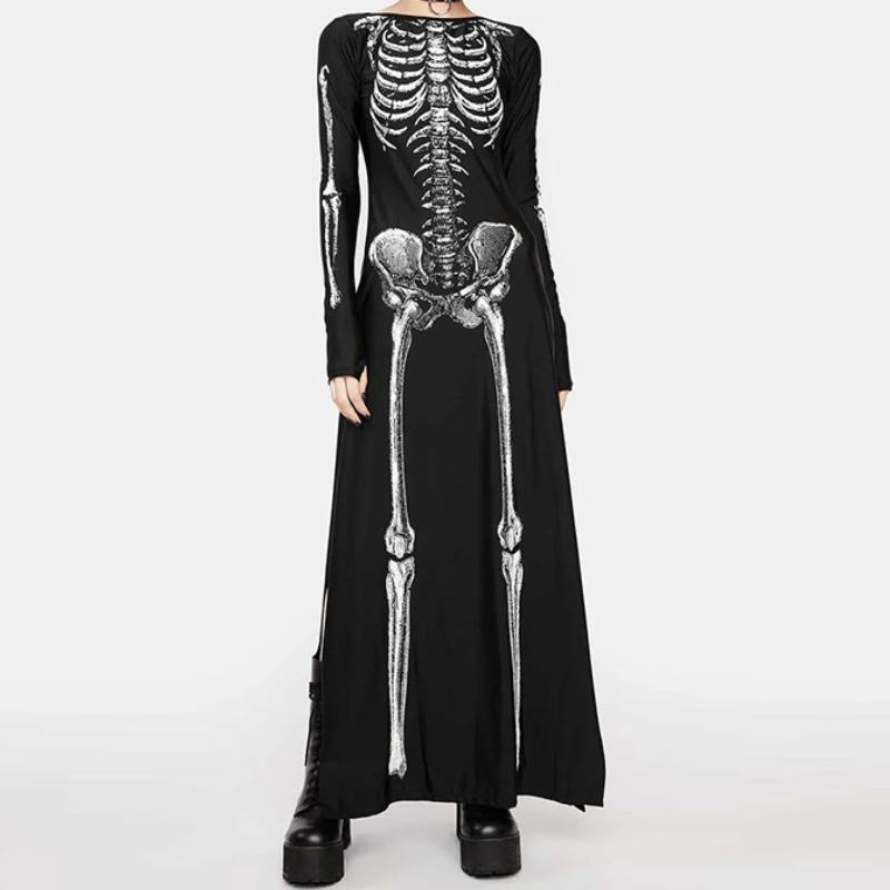 Long sleeve crewneck skeleton print maxi dress