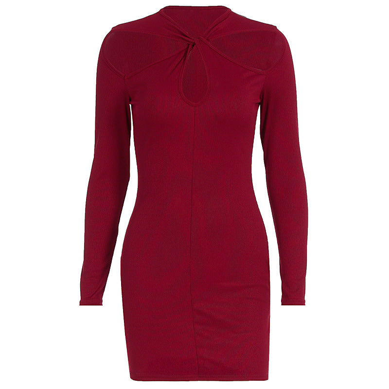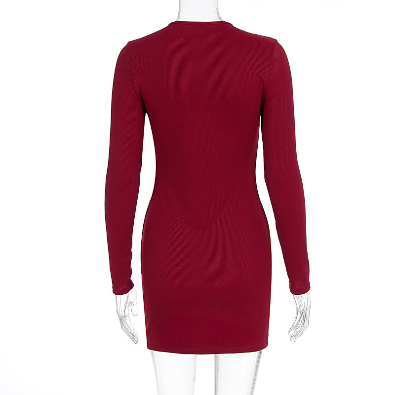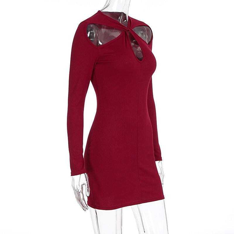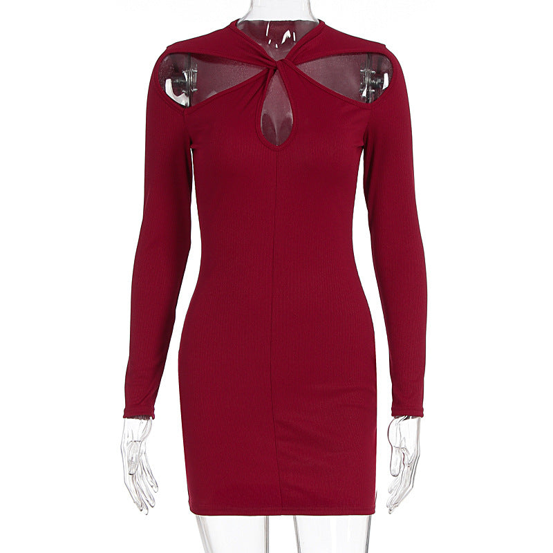 Long sleeve hollow out solid cut out mini dress