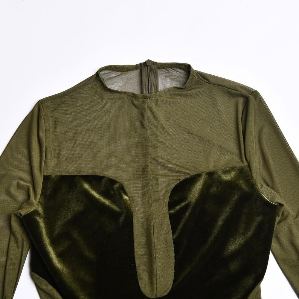 Long sleeve velvet mesh solid zip-up maxi dress-final-sale