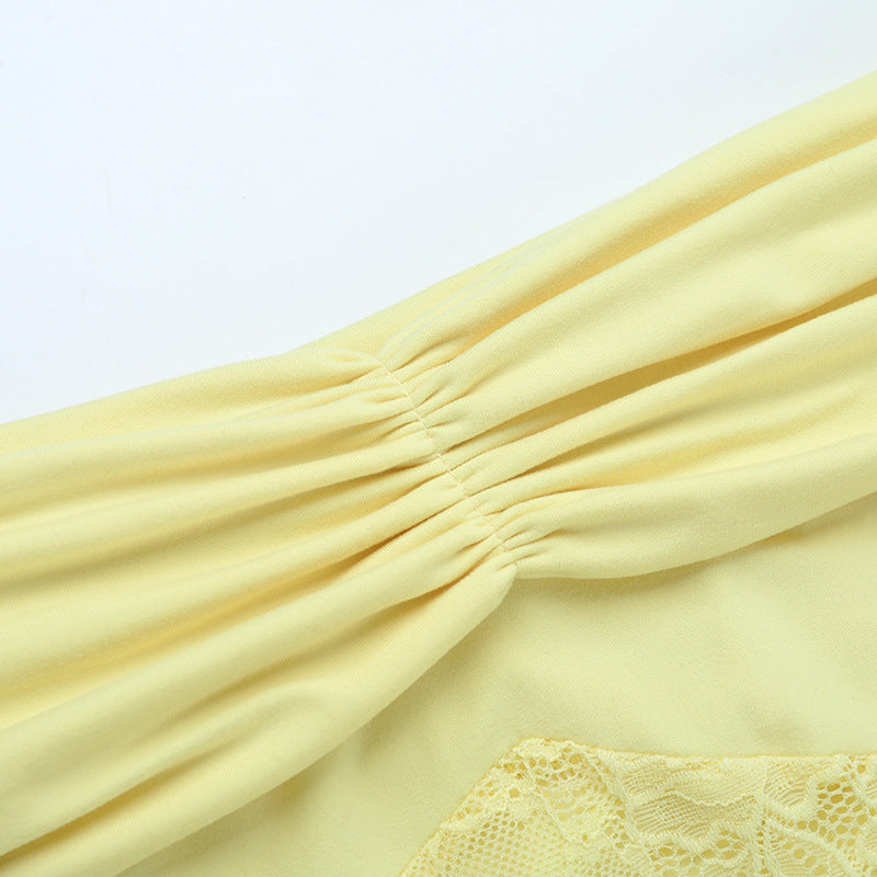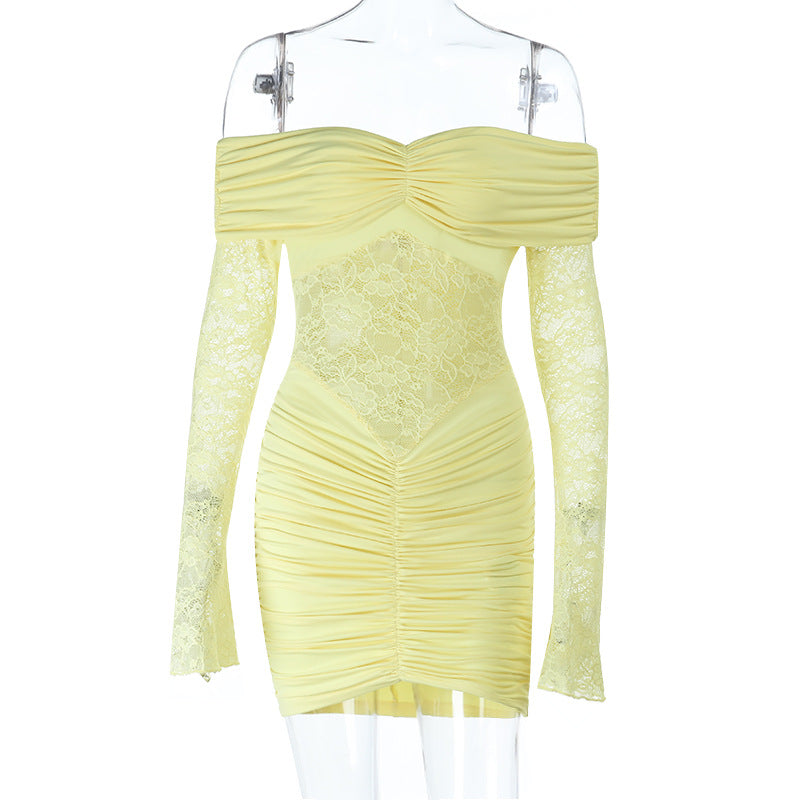 Off shoulder long sleeve ruched lace mini dress