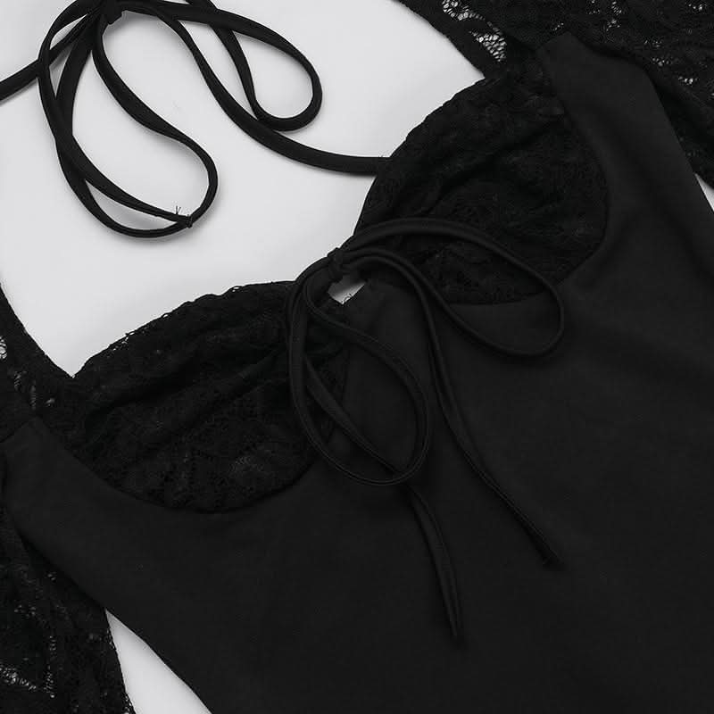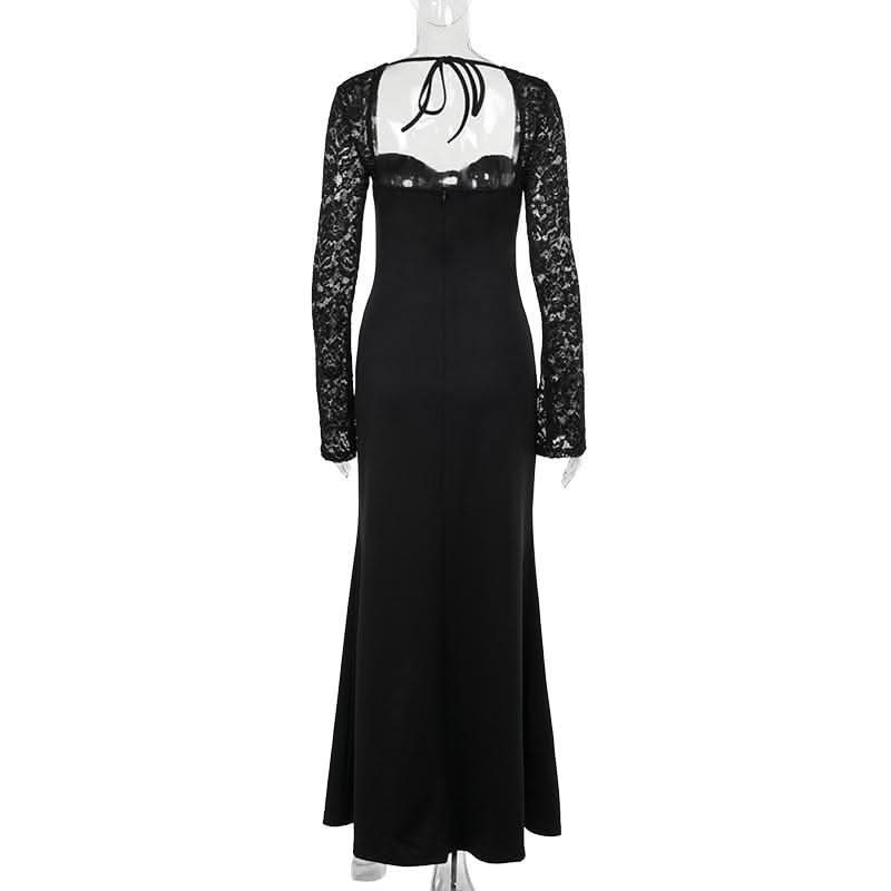 Sweetheart neck long sleeve self tie slit maxi dress-final-sale