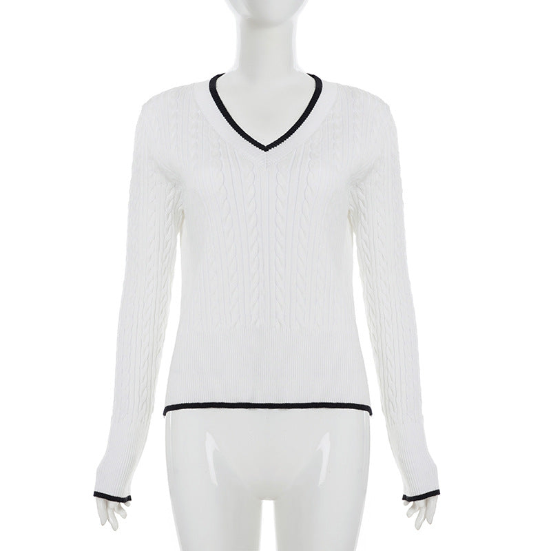 V neck long sleeve knitted top