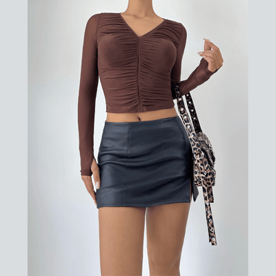 Long sleeve knitted hollow out ribbed cross front crop cut out top