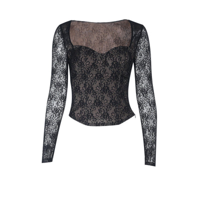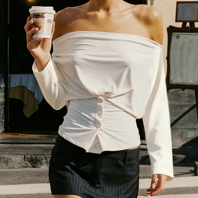 Long sleeve hollow out ruched u neck 2 piece cut out top