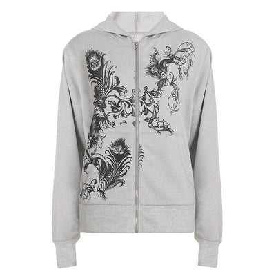 Zip-up beaded fluffy hoodie bowknot long sleeve top