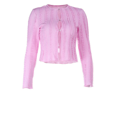 Gradient hollow out contrast striped long sleeve crochet cut out top