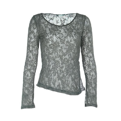 Long sleeve crewneck hollow out lace ribbed cut out top